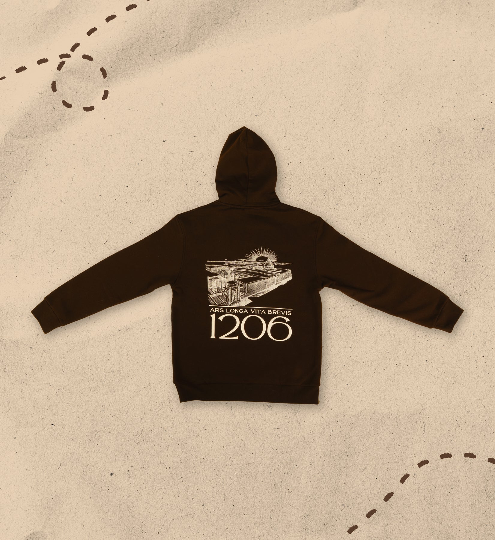 Bu hoodie, o yolun bugüne dokunan hâli. Yumuşak ama dayanıklı üç iplik kumaşıyla, bir binayı değil, bir fikri taşır. Bugünün tıp öğrencilerine, geçmişten sessiz bir hatırlatma.